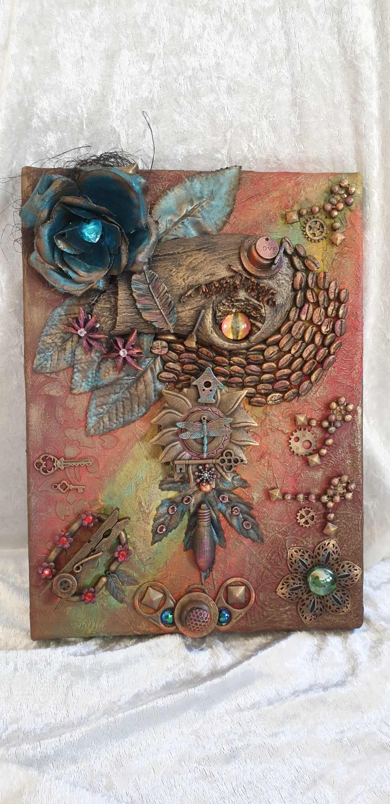 "EldDraken" mixmedia målad och dekorerad på canvas