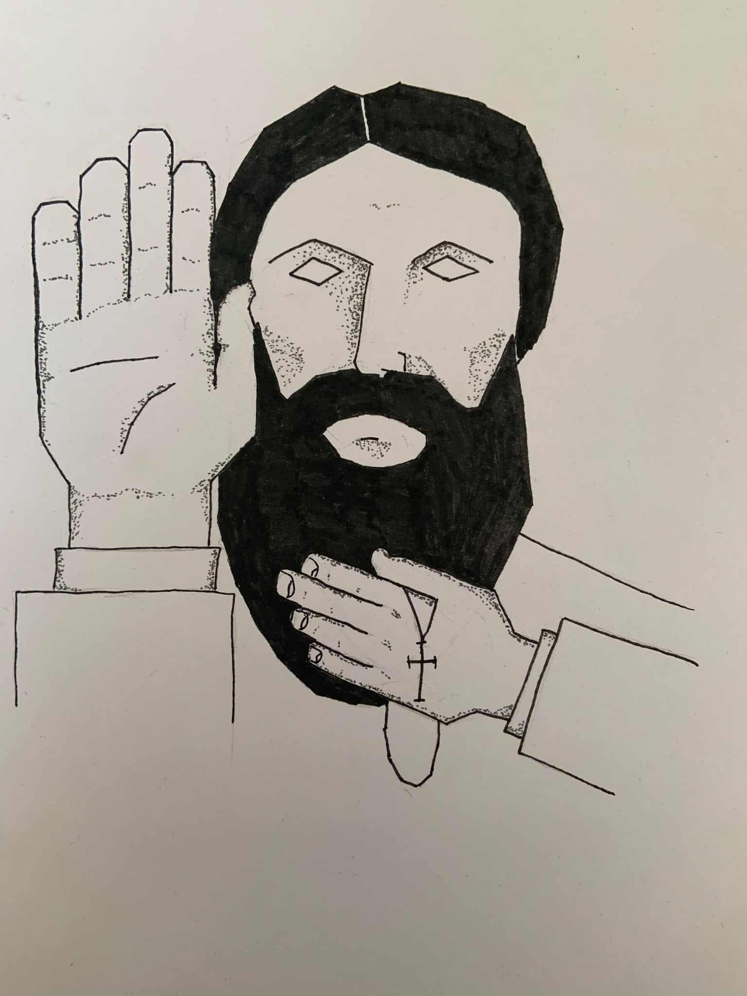En bild skapad med fiberpennor på grövre ritpapper. En tydligt iögonfallande bild.